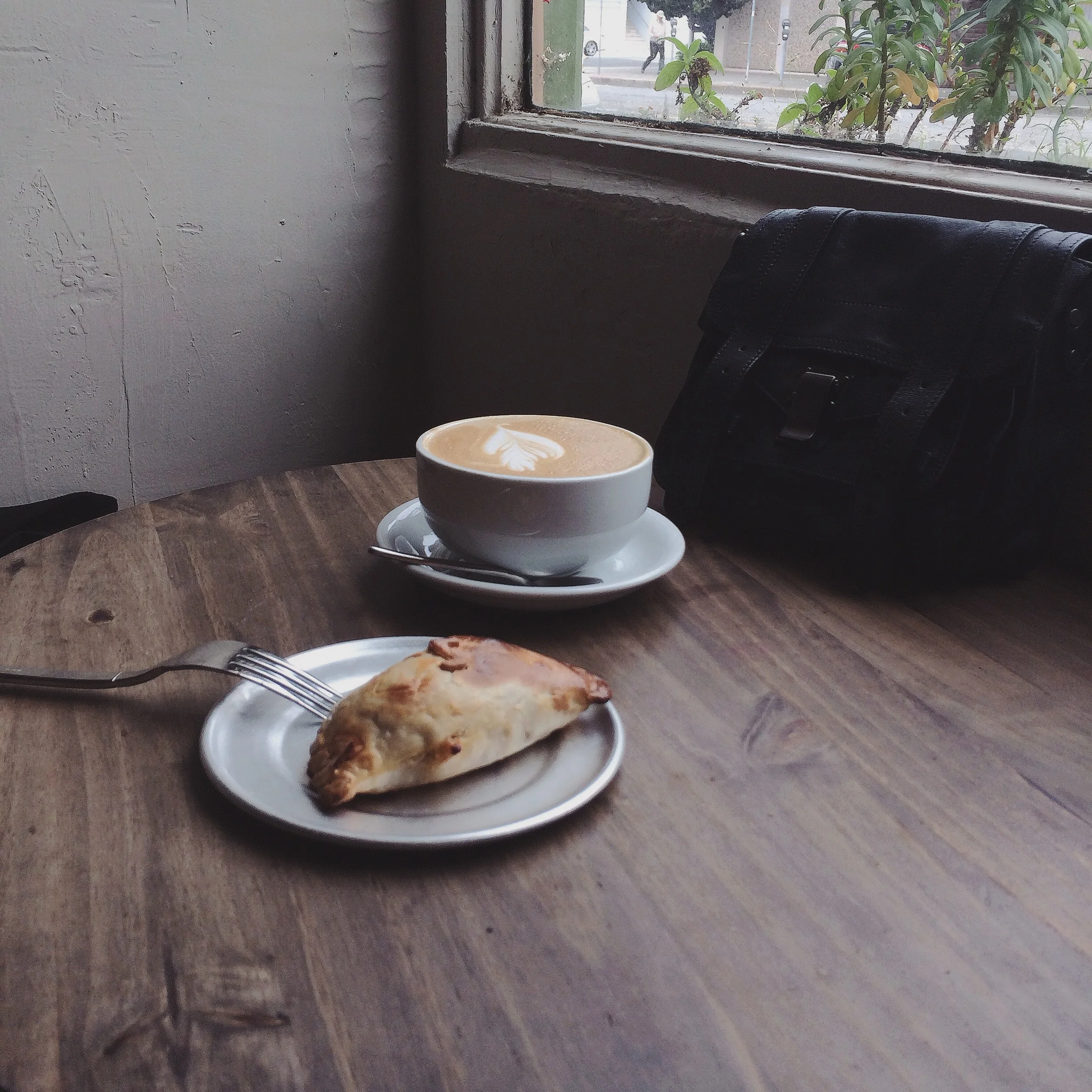 Over the weekend while running random errands, we finally got to stop in this little Cafe Hollow. The simplicities and rustic feel of the design is very calming and creates a nice relaxing atmosphere. We just ordered some yummy lattes and an empanada to share. It was pretty delicious ... I believe best described as "Yumm!" ...