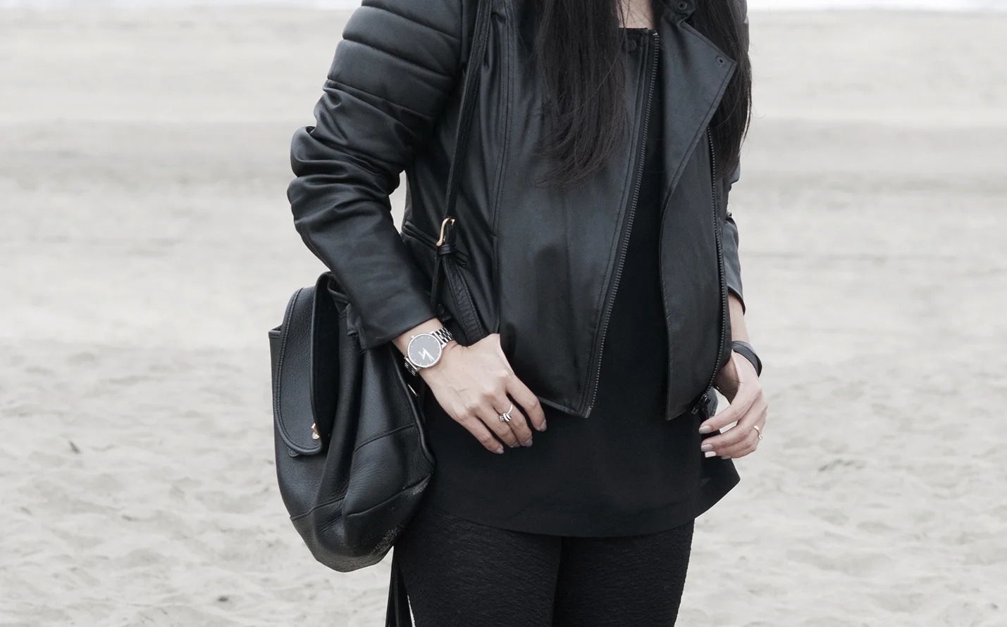 Last week on our morning walk I was excited to wear this faux leather jacket. It's been in my closet for a quite a while and I haven't felt brave enough to wear it out.