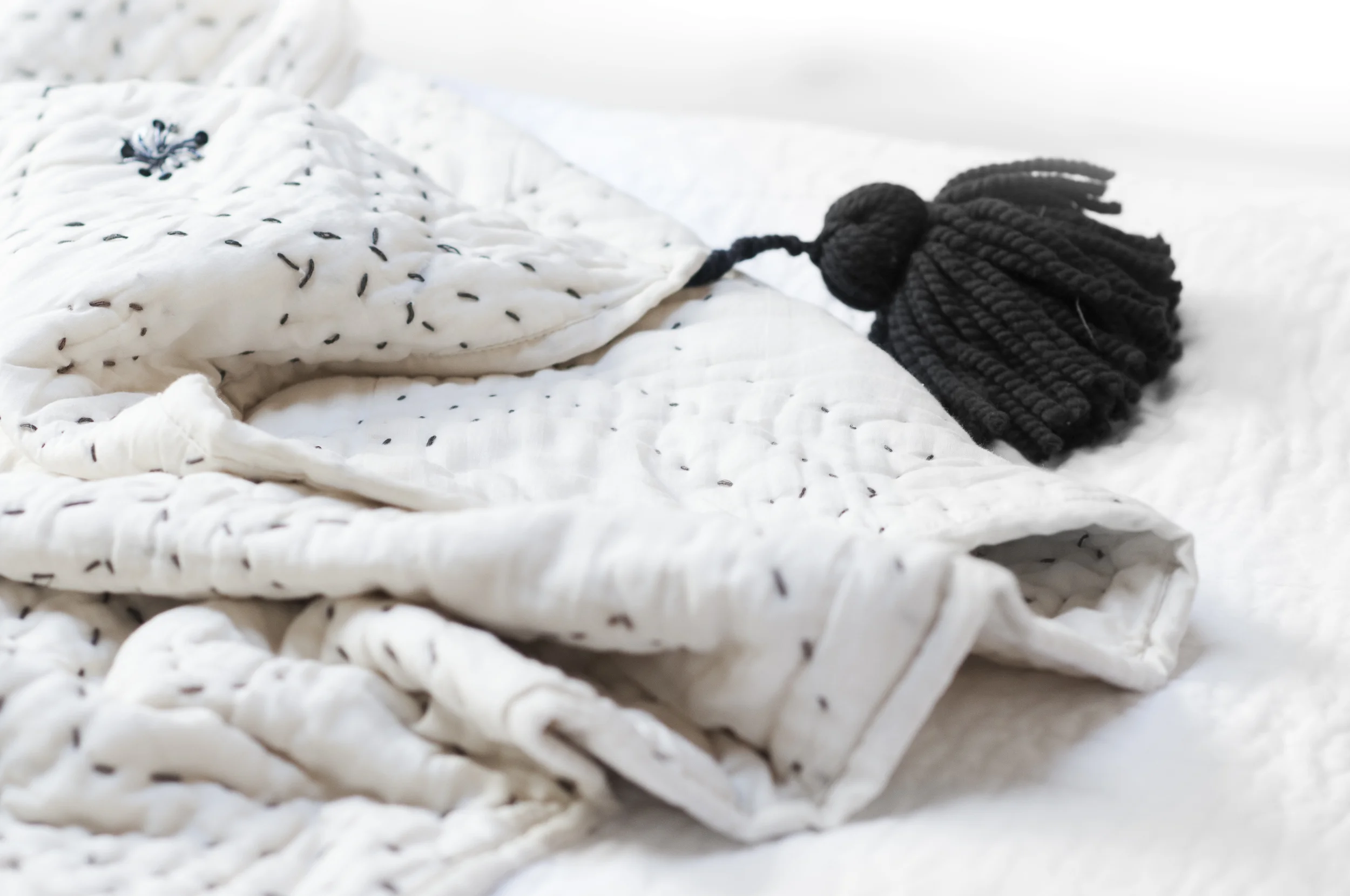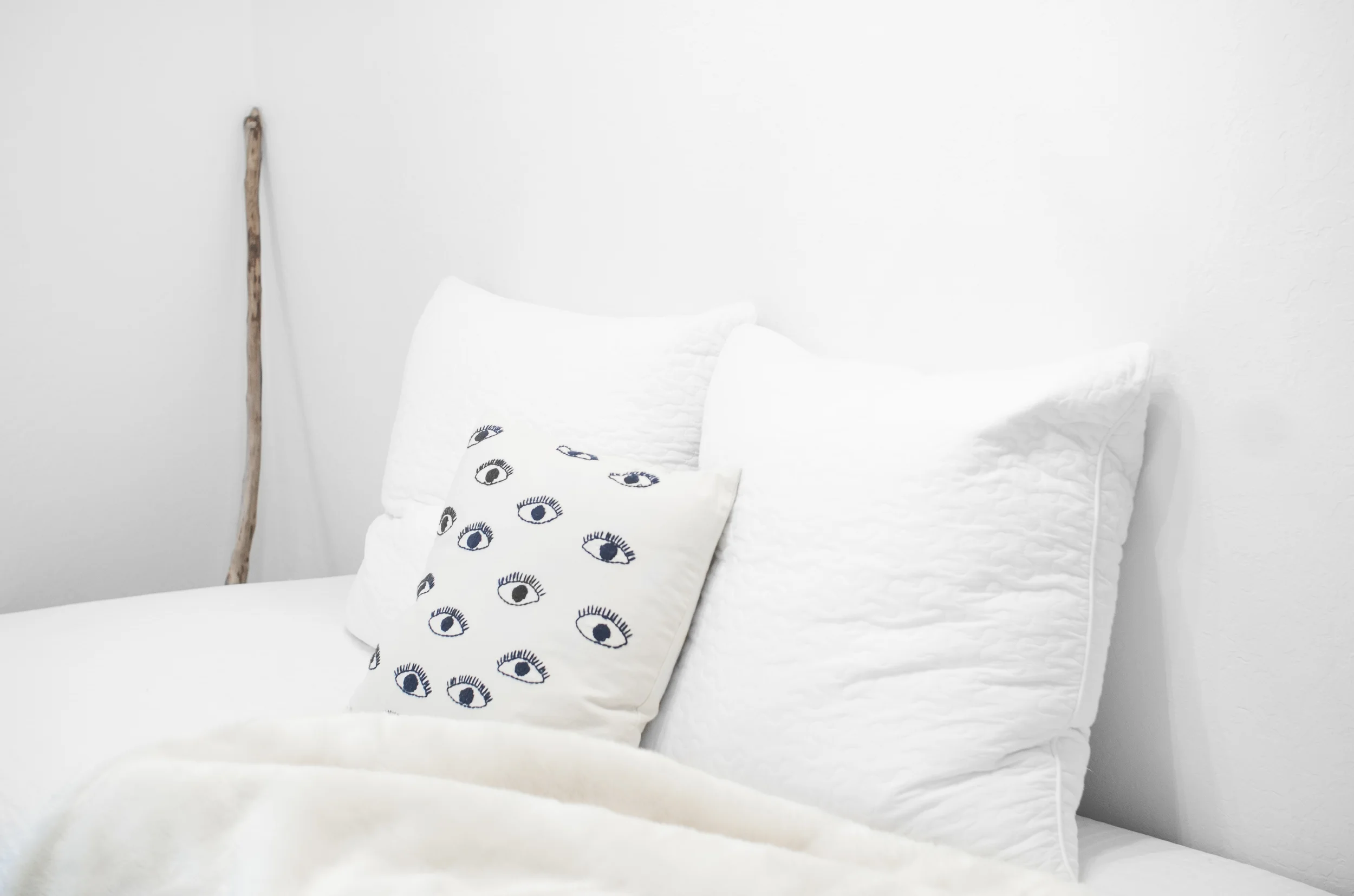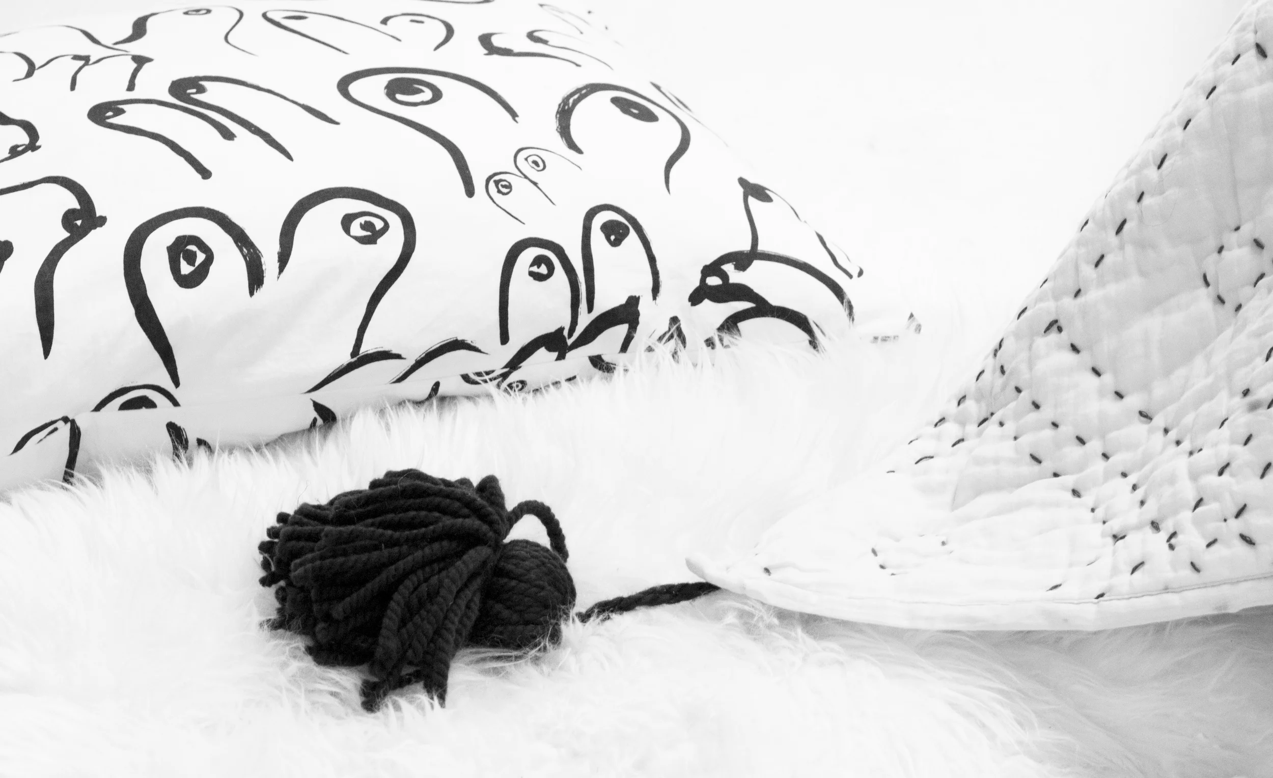 Gravel & Gold - Boob Pillowcase . Diamond Quilt . Flokati Shag Rug